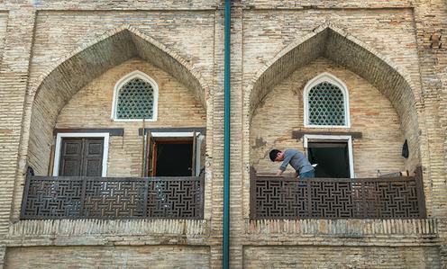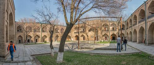 Абдулқосим мадрасининг олди қисмининг кўриниши. Эшик ортида – ҳунармандлар устахонаси. Андрей Кудряшов фотосурати, "Фарғона"