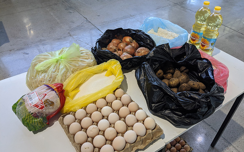 Муҳтожлар учун озиқ-овқат саватчаси тўплами. Никита Макаренконинг Facebook саҳифасидан олинган фотосурат
