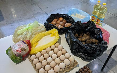 Korzinka.uz супермаркетлар тармоғи тайёрлаган ёрдам пакетлари . Никита Макаренконинг Facebook саҳифасидан олинган фотосурат