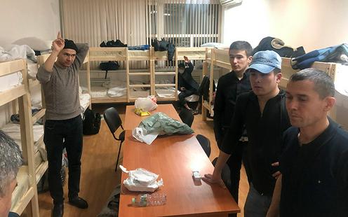 Россия Федерациясида қолиб кетган мигрантлар Москвадаги хостеллардан бирида . Екатерина Иващенко фотосурати, "Фарғона"