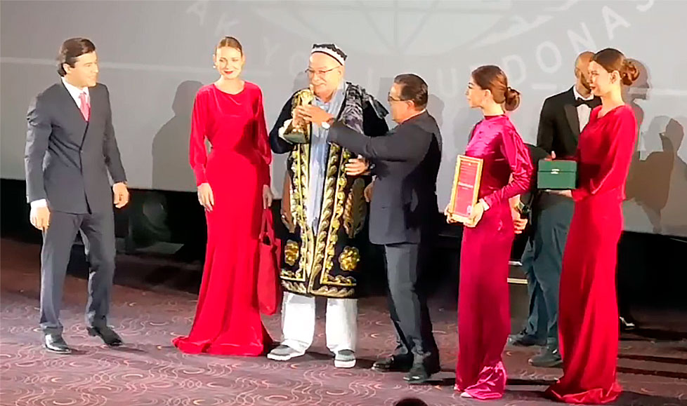 «Вақт ажратиб фестивалга ташриф буюрганинигиз учун, Никита Сергеевич сизга миннатдорчилик билдираман. Сизнинг ушбу анжуманда иштирок этишингиз, албатта улкан воқелик, — деди Ўзбекистон кинематография агентлиги раҳбари. — Бугун қайтиб учиб кетаётганингиз учун, бир миссиясини амалга оширмоқчиман. Ўзбекистон республикаси президенти топшириғига биноан «Ипак йўли дурдонаси» фестивали учун бешта мукофот ажратилган — улар ҳайкалчалар ва $20 минг миқдорида мукофот пулидан иборат. Жюри қарорини эълон қилишга руҳсат берсангиз. Никита Сергеевич Михалков ушбу мукофотларнинг бири билан тақдирланади!