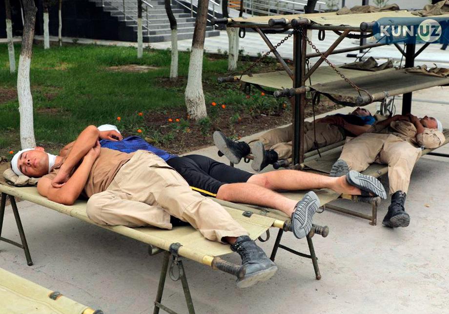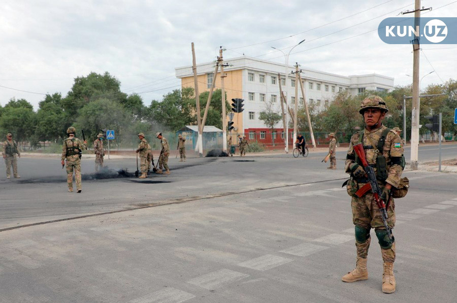 Кейинроқ, 5 июль куни бўлиб ўтган брифингда Қорақалпоғистон комендатураси раҳбари Рустам Жўраев (Ўзбекистон Миллий гвардияси бошлиғи) ҳалок бўлганлар орасида тўрт нафар ҳарбий хизматчи борлигини билдирди. Ҳалок бўлган 14 нафар тинч аҳолидан 13 нафари спиртли ичимликлар ва гиёҳванд моддалар таъсирида бўлган.