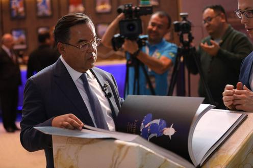Фирдавс Абдуҳолиқов янги китоб альбомини тақдим этмоқда. Ғиёс Жалолов фотосурати