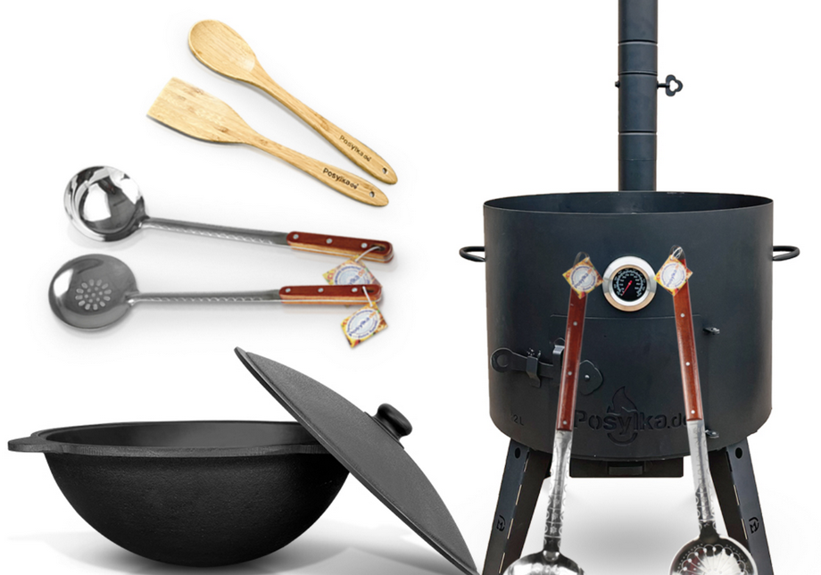 - Албатта. Ўша Posilka.de да тўплам €292 туради. У ўчоқ, қозон, қошиқ, белкурак, термометр, капгир ва чўмични ўз ичига олади. Алоҳида сотиладиган бўлса, ўчоқ ва қозон биргаликда €290 га тўғри келади. Тежамкорлик тахминан 20 фоизни ташкил қилади.