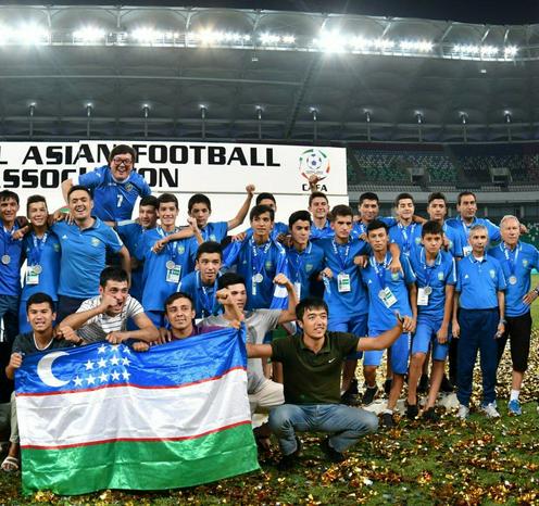 Ўзбекистон ёшлар терма жамоаси. Ҳусанов биринчи қаторда чапдан учинчи. ЎФА матбуот хизмати фотосурати