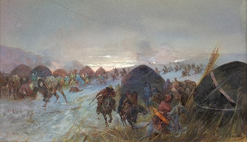 Омскдаги Горчаковга хон бошини етказган Калигулла Алибеков генерал-губернатордан «бўйнидаги Георгий лентасига тақиш учун кумуш медали»ни олган.