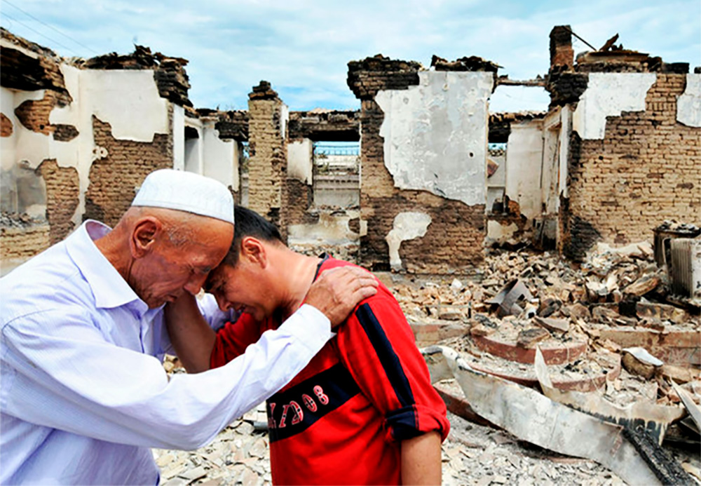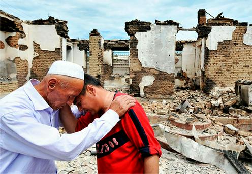 Шарқ қишлоғида вайрон бўлган ўйи қаршисида йиғлаётган ўзбек . 2010 йил, 16 июнь. Viktor Drachev фотосурати/AFP/Getty Images