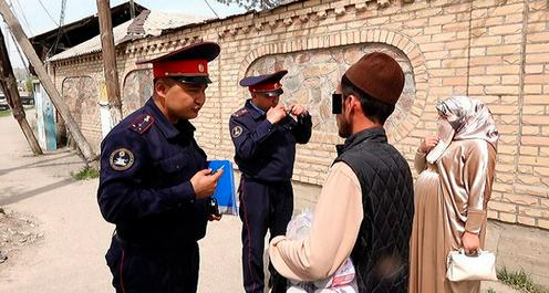 Апрель ойида Қирғизистоннинг учинчи йирик шаҳри бўлмиш Жалолободда одамларнинг тақиққа амал қилинишини кузатувчи рейдлар ўтказилиб, ҳуқуқ-тартибот идоралари ходимлари кўчада ниқоб кийган аёллар билан «тушунтириш суҳбатлари» ўтказган.