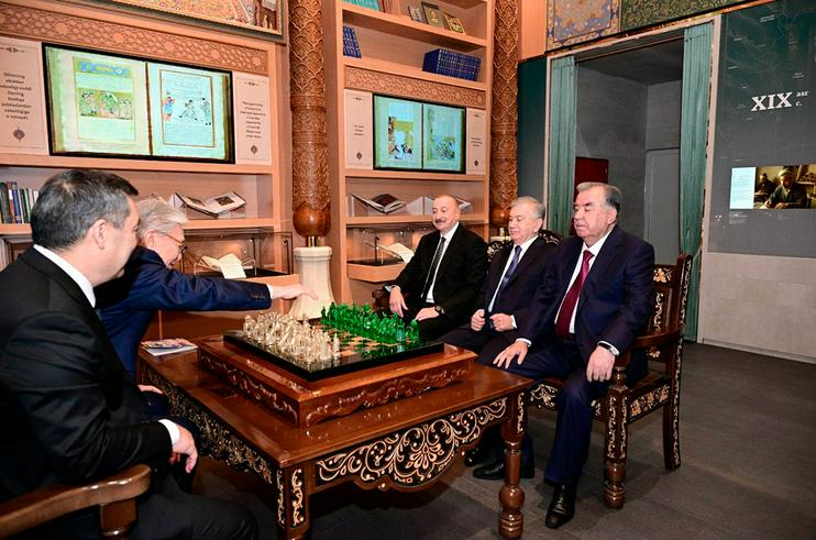 Марказий Осиё давлатлари раҳбарларининг еттинчи Маслаҳатлашув учрашуви иштирокчилари Ислом цивилизация марказида., 2025 йил 15 ноябрь. Озарбайжон президенти матбуот хизмати фотосурати