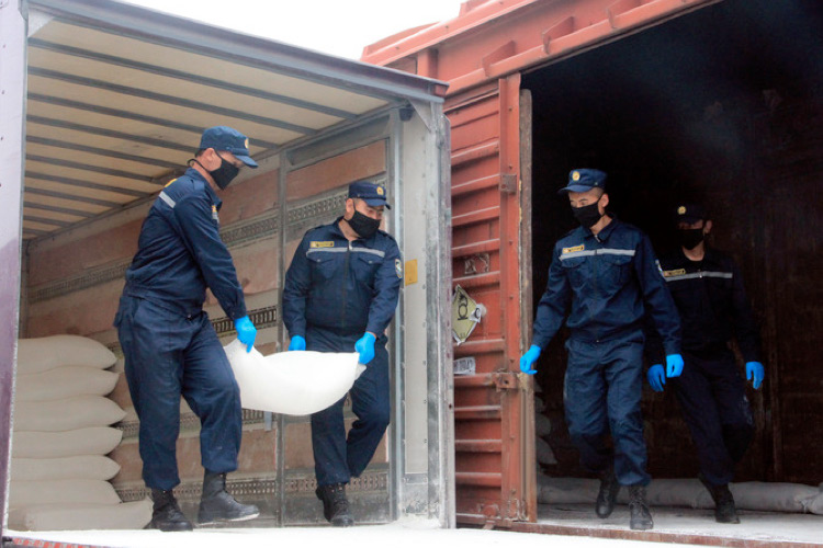 Ангрен-Тошкент-Термиз-Мозори Шариф йўналишида жўнаб кетган поездга тиббиёт ниқоблари, ҳимоя комбенизонлари, тепловизорлар, ун, ўсимлик мойи, гуруч, хўжалик совуни ва болалар учун кийим юкланган.