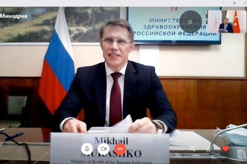 Россия соғлиқни сақлаш вазири Skype орқали ҳамкасти билан мулоқотда. Туркия соғлиқни сақлаш вазирлиги матбуот хизмати фотосурати