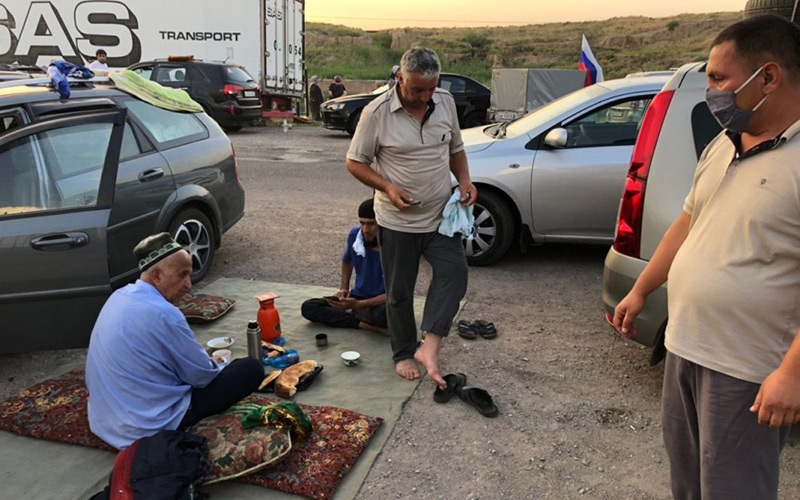 Одамларнинг сўзларига кўра, улар учун чегара очилишини кутиш оғир кечмоқда, негаки кундузи ҳаво ҳарорати +45 даражага етмоқда. Иссиқдан улар машина юкхонаси ёки тагига яширинмоқдалар. Кўпчиликнинг пули тугаган, уларга маҳаллий аҳоли озиқ-овқат масаласида ёрдам кўрсатмоқда.