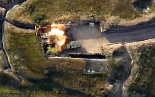 Озарбайжон артиллериясининг арманларни ўққа тутиши. Mod.gov.az сайти видеоёзувидан кадр