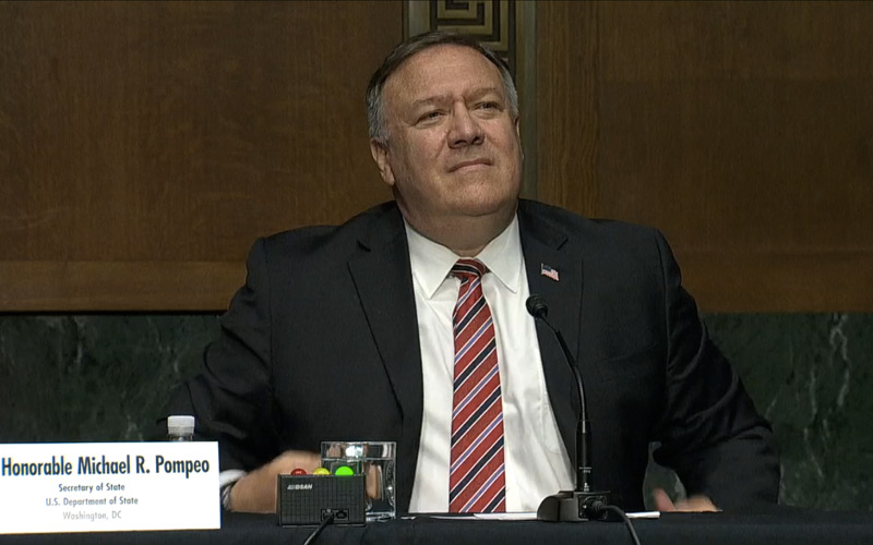 Помпео сенат қўмитасига Афғонистон, Ливия, Сурия, Украина ва бошқа мамлакатларида америкаликлар учун Россия таҳдидлари бартараф этилганини маълум қилди. У 2019 йилда Сурияда америкаликларга қарши жанг қилган бир неча юз нафар россиялик ёлланган жанггариларини тилга олиб ўтди. «Улар энди бу сайёрада яшамаяптилар», дея билдирди Помпео.