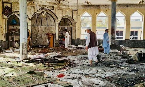 «ИШИД-Хуросон» томонидан 2021 йил 8 октябрда Қундуздаги масжидга уюштирилган теракт асорати. Ariana News сайти фотосурати