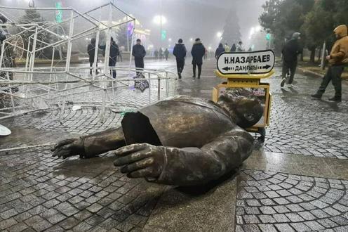 2022 йил 5 январь куни намойишчилар Талдиқўрғондаги Назарбоев ҳайкалини бузиб ташладилар. Ижтимоий тармоқдан олинган фотосурат