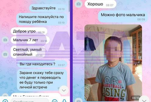 Наргизанинг болани сотиш ҳақидаги эълонини ижтимоий тармоқларда («База» аниқлик киритишича, «ВКонтакте»да буйрак трансплантацияси ҳақида) » в Instagramдаги ( РФда эстретик деб тан олинган Meta корпорациясига тегишли ушбу ижтимоий тармоқ Россияда тақиқланган) «Альтернатива» аккаунт обуначиларидан томонидан аниқланган. Кўнгиллилар Наргиза билан ёзишмага киришади. Аёл сотмоқчи бўлган ўғил унинг биринчи турмушидан ўғли эканлигини, иккинчи турмушидан яна иккита фарзанди борлигини айтади. Иккинчи эри катта ўғлига қарши бўлган ва улар қарзларини тўлаш учун уни сотишга қарор қилишади. Бола 300 минг рублга баҳоланган.