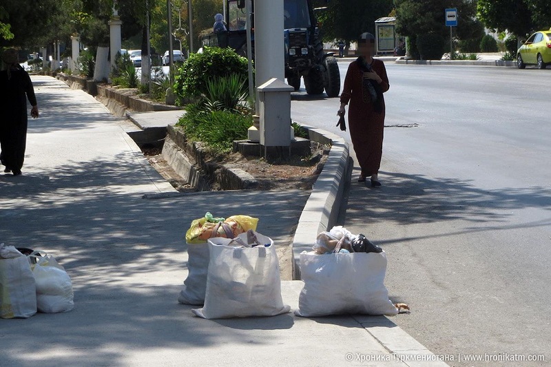 Нашрнинг қайд этишича, чиқиндиларни йиғиш пунктларида навбатчилик қилаётган полиция ходимлари Туркманистон пойтахтида қайта ишланадиган материаллар йиғувчиларни ушлаш билан шуғулланади. Қоидага кўра, қўлга тушган одамлар шишаларни йиғиш тақиқлангани ҳақида огоҳлантирилади. Гарчи, чиқинди йиғувчиларнинг сўзларига кўра, ҳуқуқ-тартибот идоралари ходимлари одамларни 50 манат (қора бозор курси бўйича 1,5 доллар) миқдорида жаримага тортган ҳолатлари ҳам бўлган.