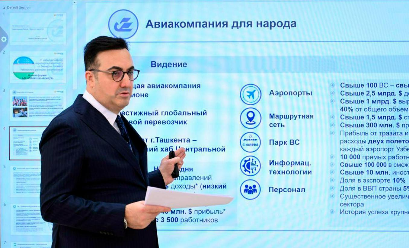 Uzbekistan airways акциядорлик жамиятини ислоҳ қилиш бўйича туркиялик мутахассис Илкер Айжи (Ilker Ayci) жамоаси билан иш олиб борилмоқда. Бу ҳақда Ўзбекистон президенти матбуот хизмати хабар беради.