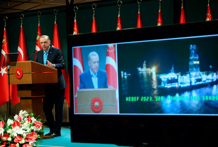 «Маълумотларнинг батафсил таҳлили натижасида аввал эълон қилинган 540 миллиард куб метр захирамиз қайта кўриб чиқилди ва 652 миллиард куб метрга баҳоланмоқда. Қора денгиздаги табиий газ захираларимиз янги кашф этилган конлар ҳисобига 170 миллиард куб метрга ошиб, жами 710 миллиард куб метрга етди», — деди Эрдўғон.