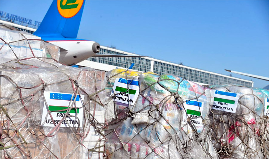 21 февраль куни ҳавога кўтарилган самолёт Фавқулодда вазиятлар вазирлиги ходимлари билан бирга болалар ва катталар учун кийимлар, маиший техника воситалари, чидамли озиқ-овқат консервалари, қуруқ мевалар, ярим тайёр овқатлар, чақалоқлар бўтқаси, одёл ва ёстиқлар, гигиеник воситалар тўплами сингари ҳаётий зарур восита ва маҳсулотларни Сурияга етказиб беради. Ўзбекистон Республикаси президенти Шавкат Мирзиёев топшириғига биноан инсонпарварлик ёрдами юборилди.