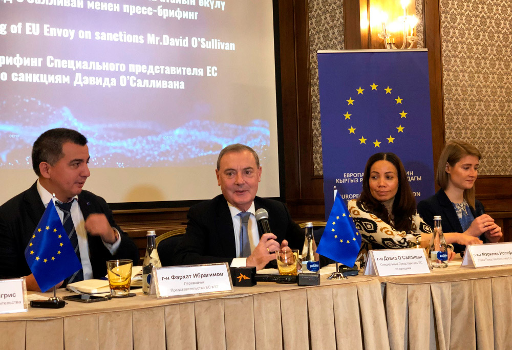 Европа Иттифоқининг санкциялар бўйича махсус вакили Дэвид О’Салливан (David O'Sullivan) Қирғизистонга келди ва у ерда 28 март куни мамлакат раҳбарияти вакиллари билан учрашди. Брифингда у Россияга қарши санкцияларни четлаб ўтиш бўйича саволлар туғилган Ўзбекистон, Қозоғистон ва яна бир қатор давлатларга ташриф буюришини маълум қилди.