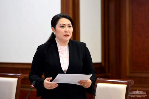 Мактабгача ва мактаб таълими вазири Ҳилола Умарова 22 майдаги тақдимотда. Ўзбекистон президенти матбуот хизмати фотосурати