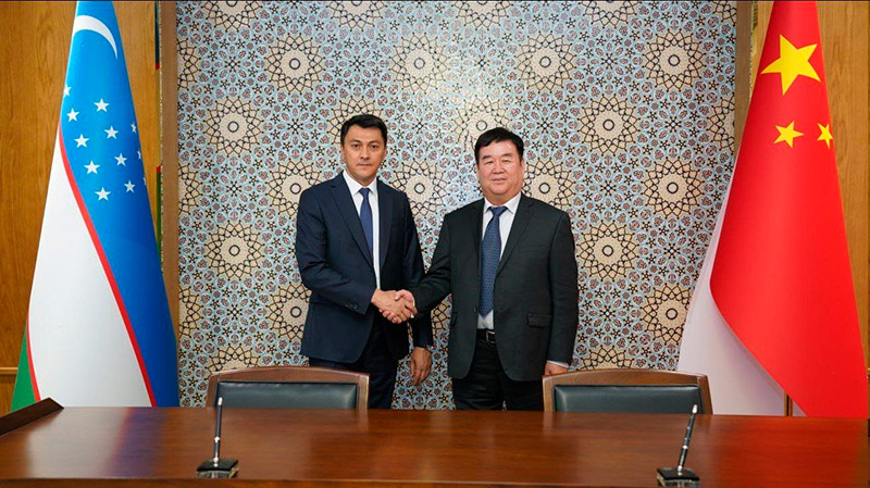 Ўзбекистон соғлиқни сақлаш вазири Амрилло Иноятов ва Хитойнинг Xindeyuan Bioengineering компанияси вакили. Ўзбекистон ССВ матбуот хизмати фотосурати