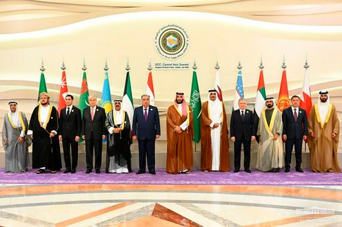 Марказий Осиё давлатлари ва Кўрфаз араб давлатлари ҳамкорлик кенгашининг биринчи саммити иштирокчилари. Ўзбекистон президенти матбуот хизмати фотосурати
