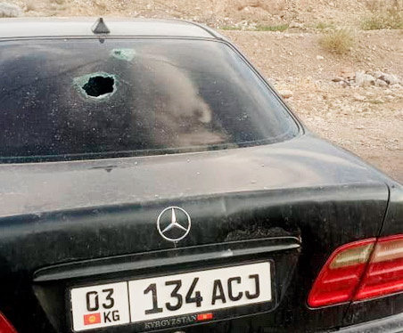 Қирғиз-тожик чегарасидаги жанжалда иштирок этган шахс автомобили. Оқсой қишлоқ йиғини раҳбари Алимбек Собировнинг 24.kg нашрига тақдим этган фотосурати
