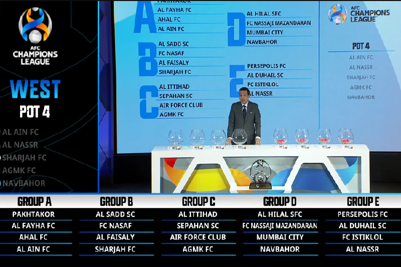 Наманганнинг «Навбаҳор» жамоаси D гуруҳида иштирок этади ва унинг рақиби Карим Бензема, ўйнаётган саудларнинг «Ал Ҳилол», Эроннинг «Нассажи» ва «Мумбай» жамоалари бўлади.