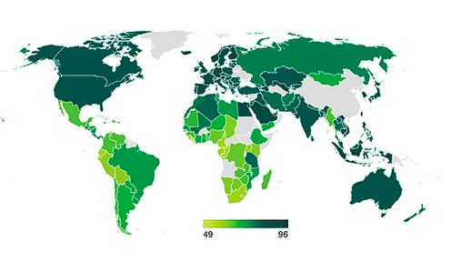 Ўзбекистон Дания, Индонезия, Косово ва Словения билан бирга 90 балл тўплаган давлатлар гуруҳидан жой олган. Қозоғистон ва Қирғизистон қатор давлатлар қатори Туркия ҳам 81 баллдан тўплаган. Туркманистон рейтингга киритилмаган.