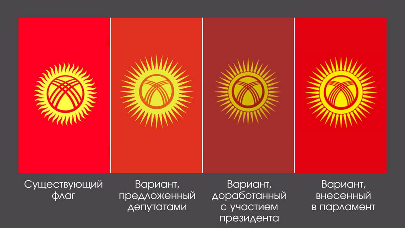 Қирғизистон Жогорку Кенеши (парламенти) депутатлари давлат байроғини ўзгартириш тўғрисидаги қонун лойиҳасини биринчи ўқишда маъқулладилар. Хусусан, қуёш нурларининг шакли янгича кўринишга эга бўлди – улар тўлқинсимон эмас, тўғри тус олди, деб хабар беради республика парламенти матбуот хизмати.