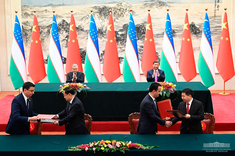 Ўзбекистон ва Хитой ўз муносабатларини «янги даврда ҳар томонлама стратегик шериклик» даражасига кўтарди. Тегишли қўшма баёнотни 24 январь куни Пекинда бўлиб ўтган музокаралар якунлари бўйича Ўзбекистон Президенти Шавкат Мирзиёев ва Хитой Халқ Республикаси Раиси Си Цзиньпин имзолади, деб хабар беради «Синьхуа» ахборот агентлиги.