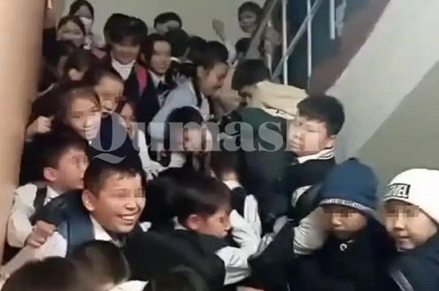 Фожиа акс этган видео бир нечта Телеграм каналларида тарқалган. Кадрларда ўнлаб болалар мактаб зинапоясида тирбанд бўлганини кўриш мумкин. Улардан баъзилари деворга тиралиб қолган, бошқалари полга йиқилиб тушган. Видеолардан бирида аёл (тахминан ўқитувчи) йиқилган ўқувчилардан бирини кўтармоқчи бўлади.