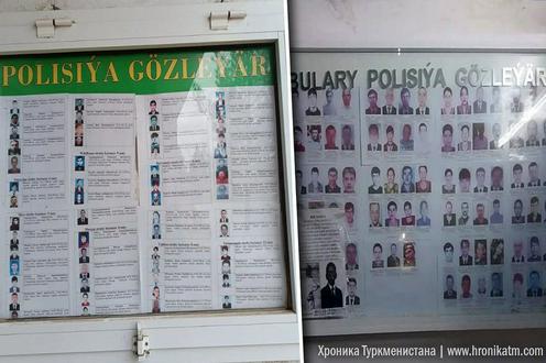 Туркманистон полиция бўлимларида фуқаролик фаолларининг фотосуратлари қидирувдаги шахслар ҳақидаги маълумотлар акс эттирилган стендларда пайдо бўлди. Бу ҳақда «Хроника Туркменистана» хабар беради.
