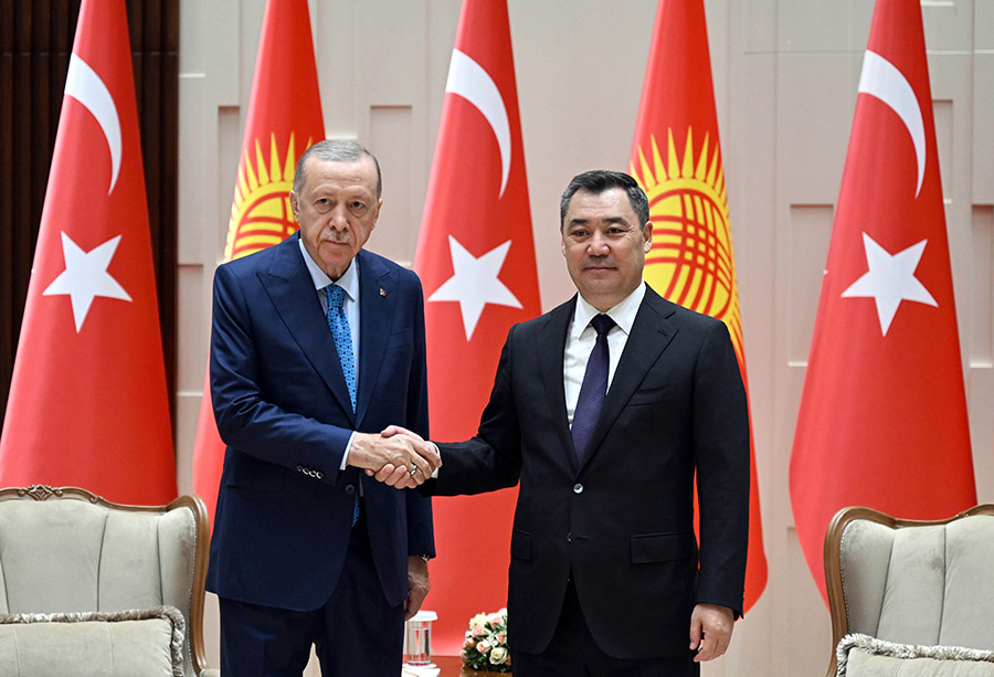 Эрдўғон 4 ноябрь куни Бишкекка давлат ташрифи, шунингдек, 6 ноябрь куни бўлиб ўтадиган Туркий Давлатлар Ташкилотининг (ТДТ) ХI саммитида иштирок этиш учун келди. Эрдўғон келганининг эртасига Жапаров билан музокаралар ўтказди.