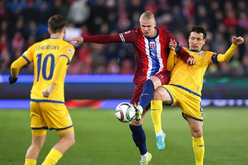Биринчи бўлимдаёқ тўп Қозоғистон терма жамоаси дарвозабони Стас Покатиловга уч марта тегди: Эрлинг Холанн дублга эришди, Александр Сёрлот эса яна бир голга муаллифлик қилди. Учрашувнинг иккинчи ярмида Холанн хет-трикни нишонлади ва Антонио Нуса учрашувга нуқта қўйди. Қозоқлар рақибларига қарши ҳеч нарса қилолмадилар.