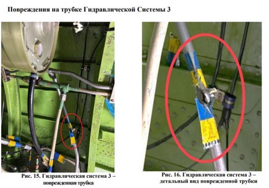 Кўпгина илма тешик шикастлар кил ва стабилизаторда топилган. №3 гидравлика тизими бўлинмаси, чап стабилизатор ва ёрдамчи қувват блоки бўлинмасидан кўплаб бегона металл буюмлар топилган. «Бегона объектлар таъсирида етказилган елвизак зарарнинг табиати ва келиб чиқишини аниқлаш учун тегишли ўрганиш ва экспертиза ўтказилади», — дейилади хабарда.