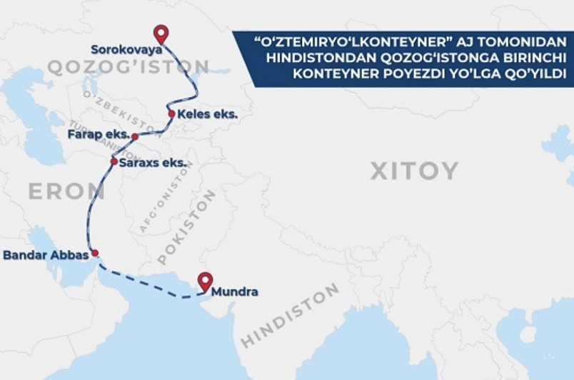 Илгари ушбу йўналиш бўйлаб Ҳиндистондан Ўзбекистонга (Мундра – Сергели) 20 та йигирма футлик контейнер ташувлари муваффақиятли амалга оширилган. «Ўзтемирйўлконтейнер» АЖ бошқарув раиси М.К. Мирхамидовнинг таъкидлашича, компания Ҳиндистон – Марказий Осиё мультимодал йўналишида мунтазам контейнер поездларини йўлга қўйишни режалаштирган.