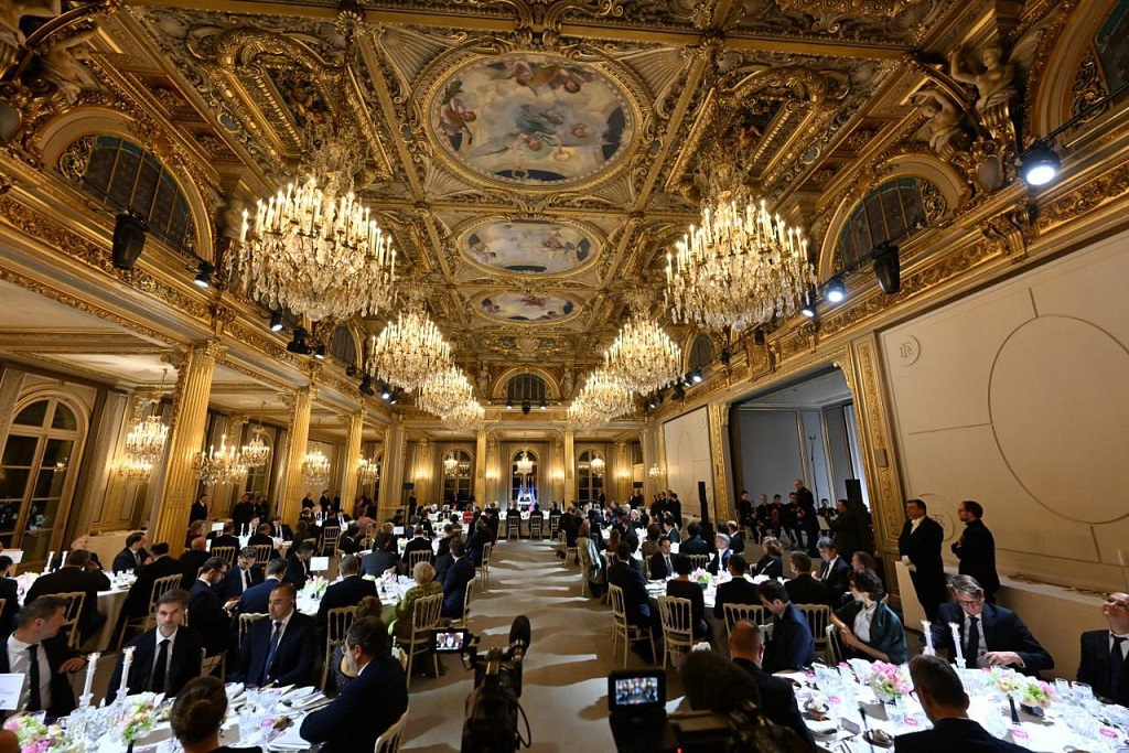 12 март куни кечқурун Елисей саройида олий мартабали меҳмон шарафига зиёфат бўлиб ўтди. Ўзбекистон Президенти ўз нутқида Франция раҳбари ва унинг рафиқасига самимий қабул учун миннатдорлик билдириб, музокаралар тарихий аҳамият касб этгани, бунинг натижасида мамлакатлар ўртасидаги муносабатлар стратегик шериклик даражасига кўтарилганини алоҳида таъкидлади.