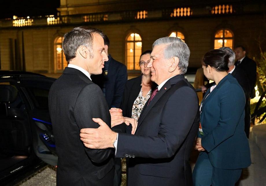 Шавкат Мирзиёев ва Эммануэль Макрон. Ўзбекистон президенти матбуот хизмати фотосурати