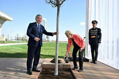 Ўзбекистон Республикаси Президенти Шавкат Мирзиёев, Европа кенгаши Президенти Антониу Кошта ва Европа комиссияси Президенти Урсула фон дер Ляйен Самарқанд шаҳридаги Конгресс маркази хиёбонида икки туп эман экдилар. Бу ҳақда Ўзбекистон Президенти матбуот хизмати хабар берди.