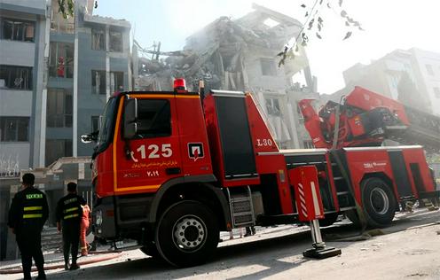 Эронлик қутқарувчилар Исроил ҳужумидан вайрон бўлган бино олдида. Majid Asgaripour фотосурати /WANA/Reuters