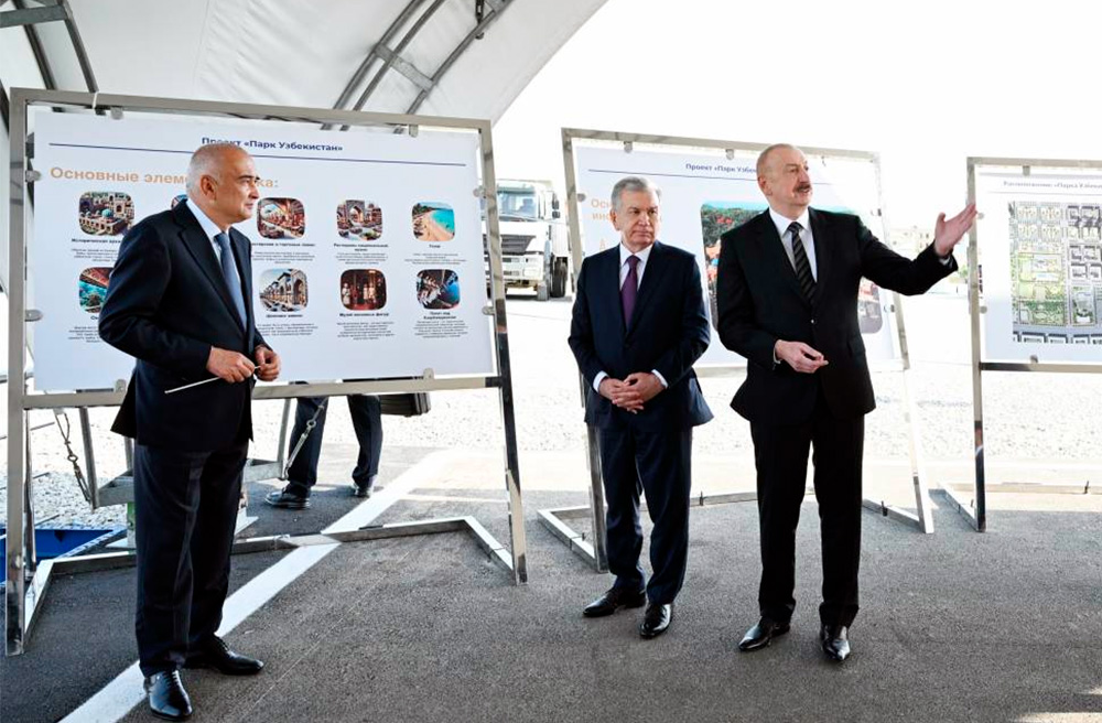 Илҳом Алиев ва Озорбайжонда давлат ташрифи билан бўлиб турган Шавкат Мирзиёев «Ўзбекистон» боғига тамал тоши қўйдилар.