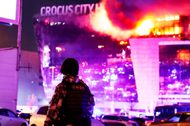 ℹ️ 2024 йил 22 март куни Москва вилоятининг Красногорск шаҳридаги «Крокус Сити Холл» концерт залида теракт «Пикник» рок гуруҳи чиқиши олдидан содир бўлганди. Камуфляждаги бир неча қуролланган киши мажмуага кириб, одамларга қарата ўқ ота бошлаган. Улар концерт залига кириб, ўт қўйишган. Ёнғин бинонинг тўрт қавати ва томини қамраб олган, шундан сўнг улар ўзлари келган машинада қочиб кетишган.