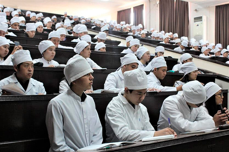 ℹ️ 2022 йил февраль ойида ўша пайтдаги Соғлиқни сақлаш вазири Алимқодир Бейшеналиев мамлакатда 24 та тиббиёт таълим муассасаси фаолият юритаётгани ҳақида маълум қилган эди. Жумладан, учта давлат олийгоҳи — Қирғизистон Давлат Тиббиёт Академияси ва Ўш давлат университети ва Қирғизистон-Россия Славян университети факультетлари. Яна 21 та таълим муассасаси, Бейшеналиевга кўра, «мансабдорлар ёки пули борлар«га тегишли. Шу билан бирга, у 17 та хусусий тиббиёт олий ўқув юртлари талабларга жавоб бермагани учун уларни ёпиш ниятида эканини маълум қилганди.