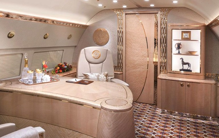 Ўшанда «боинглар»дан бири премиум-класс самолётига айлантирилгани аниқланган. Унда VIP- ётоқ хонаси, душ билан жиҳозланган чўмилиш хонаси, махсус тайёрланган стол ва массаж курсиси бўлган. Салон ҳашаматли материаллар, жумладан, олтин суви юритилган деталлар билан безатилган ва бир нечта монитор ва сенсорли дисплейлар ўрнатилган.