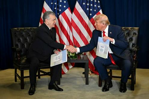 Шавкат Мирзиёев иваДональд Трамп. Ўзбекистон президенти матбуот хизмати фотосурати