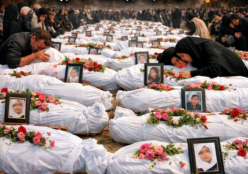 Эрон жанубидаги Хормозган вилояти, Минаб округидаги «Шажара Тайеба» бошланғич қизлар мактабида ўлган ўқувчиларни дафн этиш маросими. Х ижтимоий тармоғи фотосурати